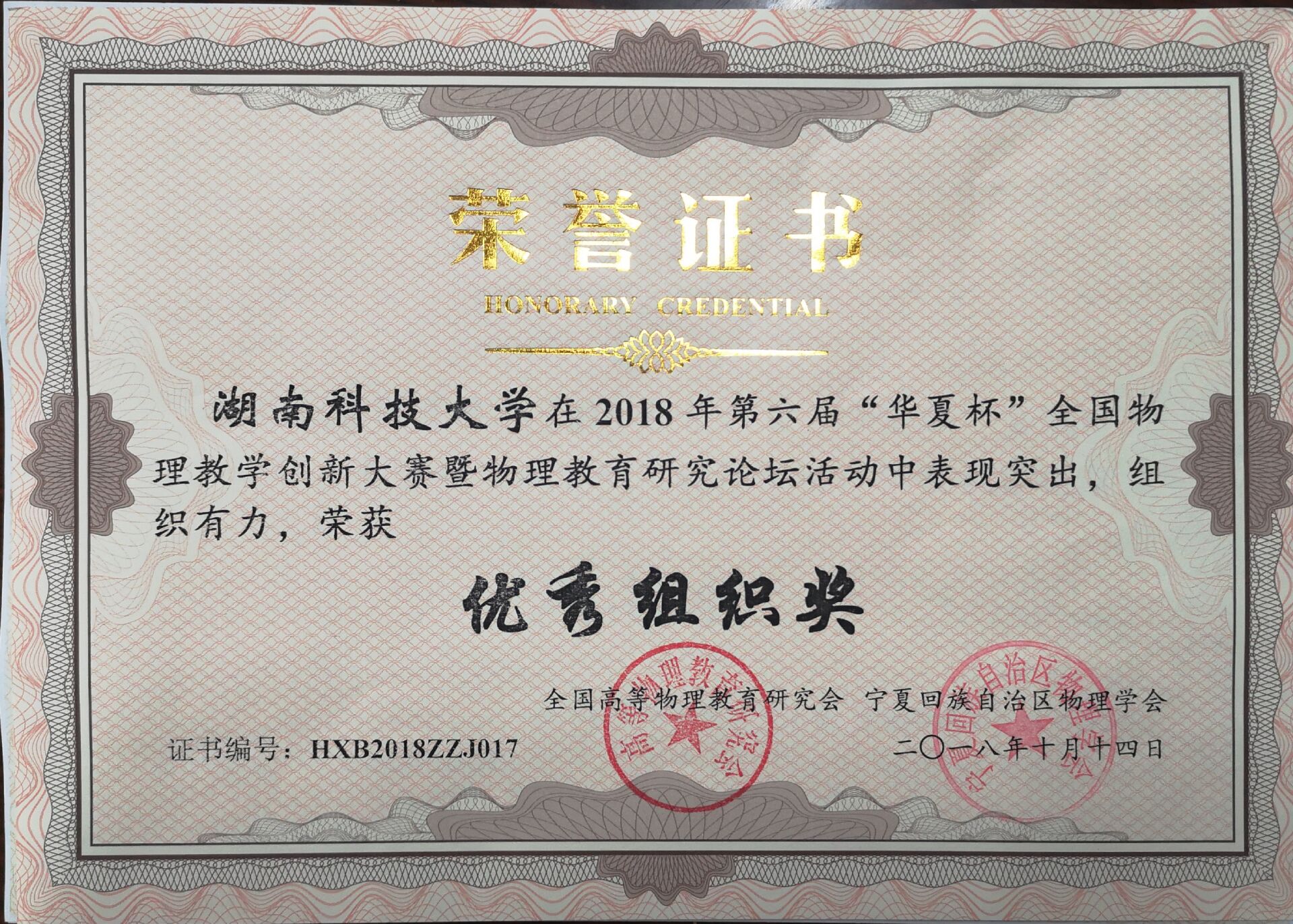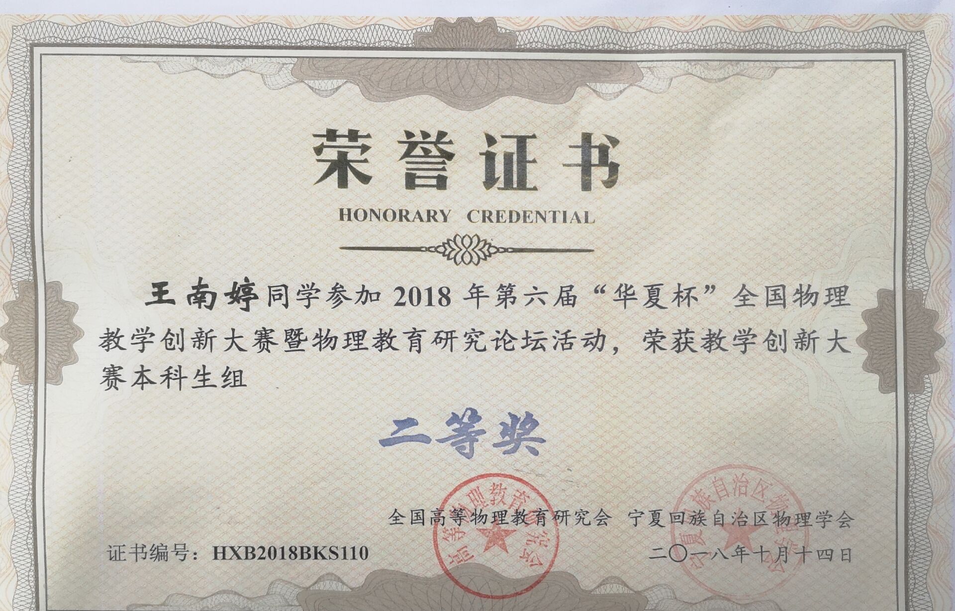 2018年10月13日至14日,由全国高等物理教育研究会主办、宁夏大学承办、宁夏回族自治区物理学会协办的第六届“华夏杯”全国物理教学创新大赛暨物理教育研究论坛在宁夏银川举行。来自全国28省市、108所院校共计487位选手参加了本次创新大赛。