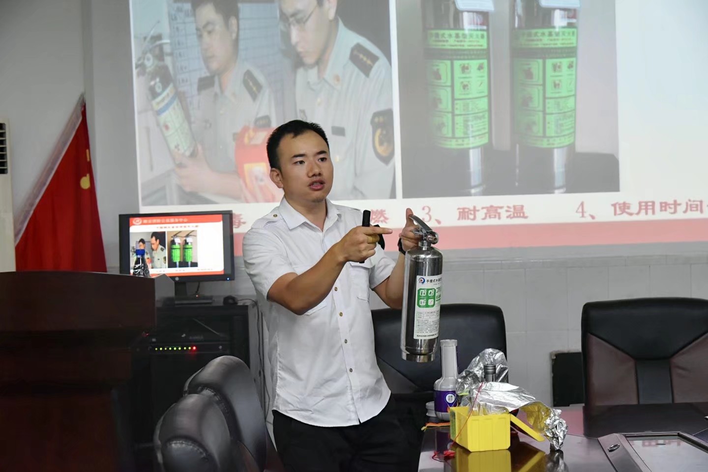 为了增强学院师生的消防意识,了解消防安全知识,由湘安消防公益服务中心组织的消防安全培训大会于10月9日下午4:00在物理楼二楼会议室举行。院党委书记周文革、院党委副书记杜鑫以及学院老师出席了本次培训大会。tapplay部分学生代表参与了此次培训大会。此次培训大会由湘安消防公益服务中心的任龙春教官主讲。