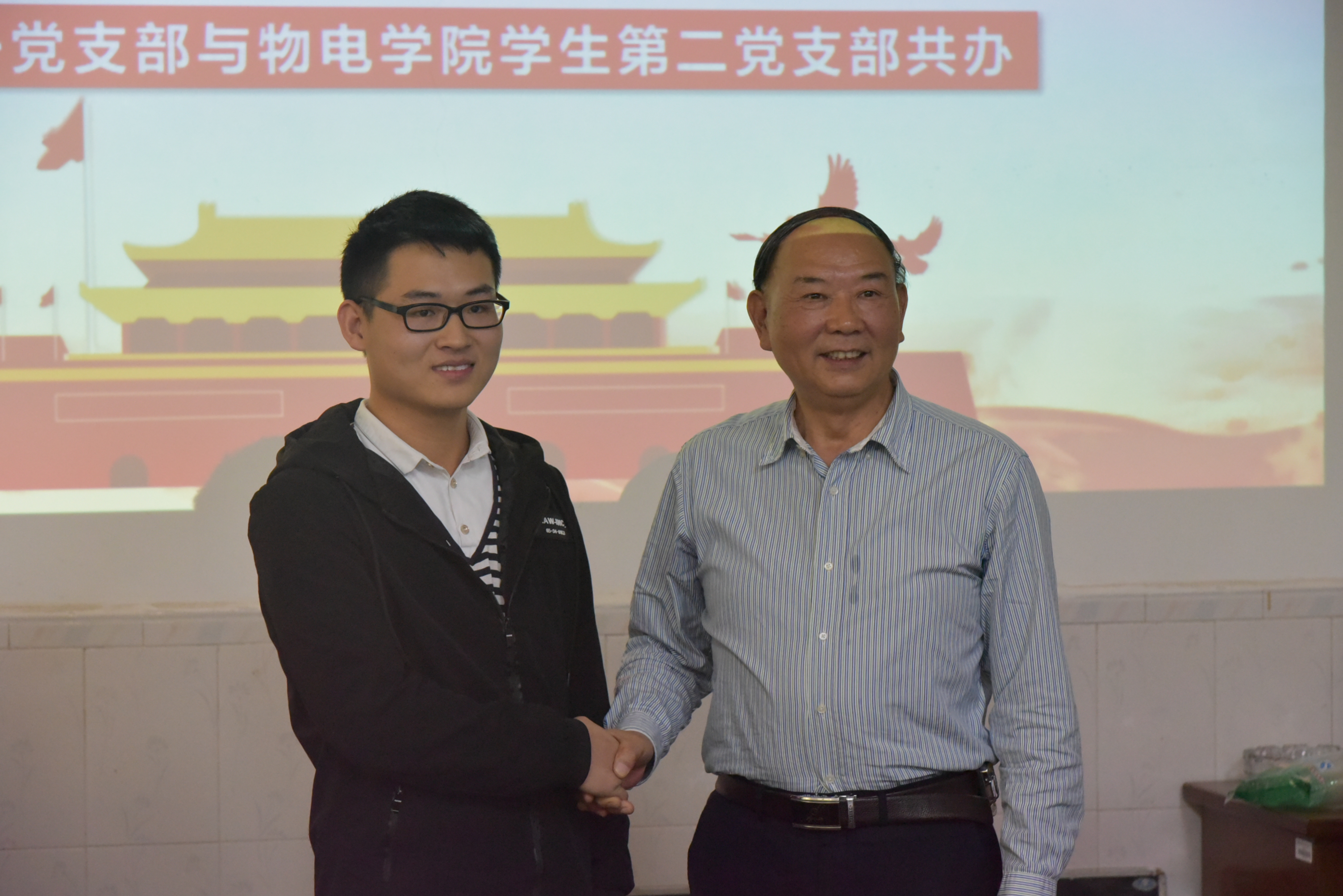 杜鑫介绍了与会领导后,仪式正式开始。首先,离退休处党委副书记段尊群发表讲话,她强调基层党组织建设是是一切点点体育官方网站登录入口的基础,讲话最后她预祝“老少牵手,互助共进”的结对共建工作取得圆满成功。紧接着,离退休处第十一支部书记卢长吾介绍了第十一党支部的基本情况,他总结到,支部党员的特点为:“高”——党员学历高、职称高、职务高,“老”——平均年龄70岁,党龄38.5年,“散”党员居住的分散。并且提出了2018年下学期结对共建的活动安排。随后,tapplay,点点体育官方网站登录入口学生第二党支部书记范文祥介绍了学生第二党支部的基本特点,同时代表支部党员保证会把党全心全意为人民服务的宗旨落到实际行动中,好好把握这次学习机会。然后两个支部的党委书记握手并合影留念。