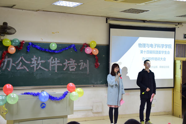 在主持人简短的开场白后,网络信息部部长蒋舒贤走上讲台为大家讲解Excel的使用,他深入浅出地讲解了excel使用的关键。紧接着网络信息部副部长张卓睿教大家PPT的制作,他精心制作的PPT吸引了在场所有人的注意力。随后就业创业部副部长李晨晨结合一些实例为在座同学们讲述了如何正确使用Word软件编辑文档。大会的最后,学生会主席胡清梅作此次培训的总结讲话。她强调了办公软件在学生会日常工作中的重要性,并点明多多练习是熟练掌握办公软件的唯一捷径。