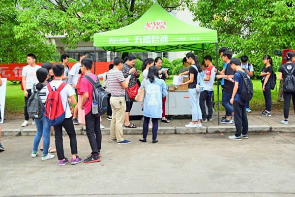 七区路口旁竖立着八块宣传牌,它们通过诚信还款、征信知识竞答、实例介绍三个部分详细介绍了办理国家助学贷款的申请、还款、续款等流程,旨在在tapplay普及助学贷款常识同时提高同学的诚信意识。摆点活动地点热闹非凡,有的拿着笔在红幅上签着自己的名字,有的拿着毛笔在折扇上写着有关诚信的名言,风趣幽默的绕口令更是吸引了许多人前来驻足。同学们通过参加有关诚信以及诚信贷款知识的有奖竞答小游戏了解到了助学贷款的常识以及提高了诚信为人的意识。