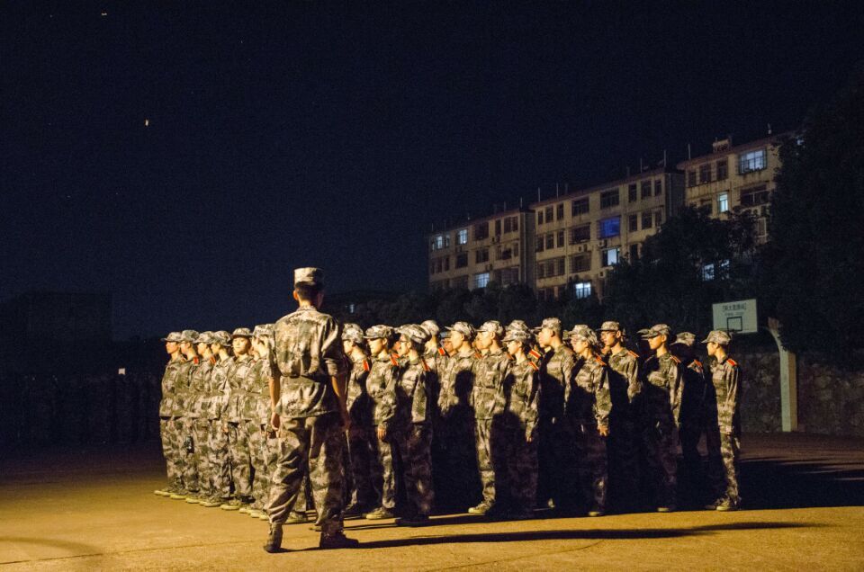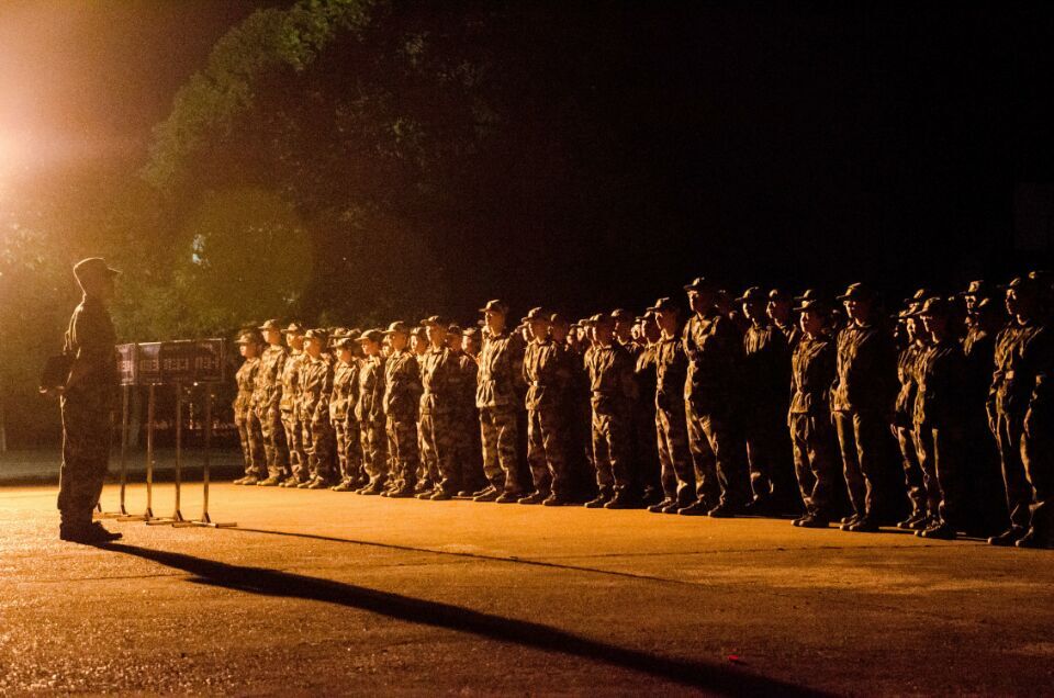夜幕笼罩下,tapplay2017级全体受训学员庄严肃穆,迅速列队集合。“报告!四营三连集合完毕,请指示!”随后,党委副书记杜鑫面向全体2017级受训学员发表讲话。杜鑫副书记首先强调了军训的必要性和重要性,要求全体学员学习人民军队坚强意志和优良作风,锻炼吃苦耐劳精神、增强集体荣誉感;他希望同学们珍惜军训的机会,积极投身到军训中,不畏苦难。他向同学们提出了“七过硬”的要求,期望他们积极配合教官训练,圆满完成军训,以优异的成绩向党的十九大献礼。
