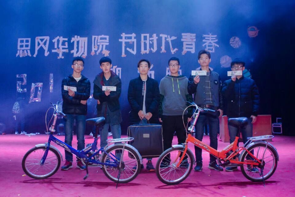在观看完精心制作的新生特辑后,伴随着热舞《work》,晚会正式开始。由院舞蹈队带来的校园风舞蹈《微微一笑很倾城》,展现了当代大学生的青春魅力;《咏春魂》武术表演、OX leather乐队的歌曲串烧,点燃了现场的气氛!而接下来的《墨韵朗音、尽曲流觞》节目,风格一转,将朗诵、书法、古筝弹奏完美结合在一起,擦出别样的火花,给观众带来动听音乐的同时,也感受到了那抹浓浓的书香、静谧的古风!学生会主席团和17级助班们的《大咖T台秀》给观众们带来了一场视觉盛宴,让大家看到了他们工作之外的青春魅力。物院学子们施展才华,挥洒汗水,将一出又一出精彩的节目带给观众。晚会的最后,教官见面环节以及学生会部长们倾情出演的《科大版成都》,给晚会增添了些许柔情和暖意,为晚会画上了一个完美的句号。晚会还进行了抽奖和新生特长赛颁奖环节。