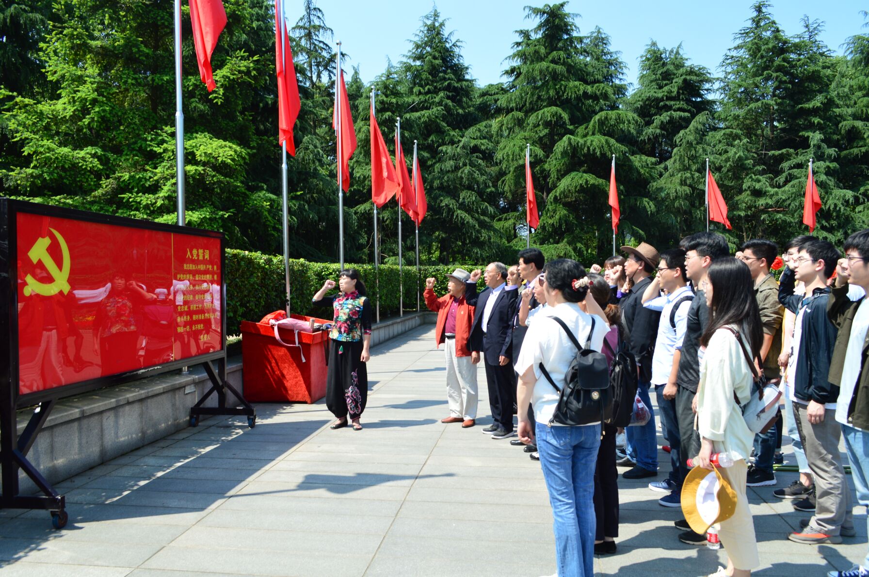 下午,大家又来到了毛泽东纪念园进行参观学习。毛泽东纪念园中展示了中国革命过程的缩影,同志们从“南湖红船”走到“井冈山”,从“延安”走到“西柏坡”,深刻体会了中国革命道路的艰辛。年逾八旬的老党员周炳文不怕苦累,坚持参加了这次活动,让在场的年轻党员们肃然起敬。“看到老前辈的这种精神,我深受感动和鼓舞,今后的人生中我会一直永葆作为一名党员的理想信念”,来自15级光电三班的党员徐志鹏谈到。